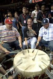 | Keywords: smithsonian institution smithsonianinstitution drum 2007 powwow 2007powwow native american drum nativeamericandrum music celebration group sound groupsound modern american indian modernamericanindian drumming circle drummingcircle native american nativeamerican ceremony drumming pow wow powwow drum circle drumcircle singing festival sports trucker hats truckerhats baseball cap baseballcap drums drummers native indian nativeindian singers rythm callers tradutional herati national museum of the american indian nationalmuseumoftheamericanindian performer musician people Description: Powwows are large social gatherings of Native Americans who follow traditional dances started centuries ago by their ancestors, and which continually evolve to include contemporary aspects. These events of drum music,  dancing, singing, artistry and food, are attended by Natives and non-Natives, all of whom join in the dancing and take advantage of the opportunity to see old friends and teach the traditional ways to a younger generation.   During the National Powwow, the audience see dancers in full regalia compete in several dance categories, including Men and Women's Golden Age (ages 50 and older); Men's Fancy Dance, Grass and Traditional (Northern and Southern); Women's Jingle Dress, Fancy Shawl, and Traditional (Northern and Southern); Teens (13-17); Juniors (6-12) and Tiny Tots (ages 5 and younger). The drum groups are the heart of all powwows and provide the pulsating and thunderous beats that accompany a dancer's every movement. The powwow is led by three "host drums" that showcase three distinct styles of singing (Northern, Southern and contemporary) and represent the best examples of each style. The drum contest highlights groups of 10 to 12 members each, and they sing traditional family songs that are passed down orally from one generation to the next. The National Museum of the American Indian sponsored the National Powwow in 2002, 2005, and 2007 as a way of presenting to the public the diversity and social traditions of contemporary Native cultures.  Creator/Photographer: Cynthia Frankenburg  Medium: Digital photograph  Culture: American Indian  Geography: USA  Date: 2007  Repository: National Museum of the American Indian  Accession number: 20070810_01a_csf_ps_303 Description: Powwows are large social gatherings of Native Americans who follow traditional dances started centuries ago by their ancestors, and which continually evolve to include contemporary aspects. These events of drum music,  dancing, singing, artistry and food, are attended by Natives and non-Natives, all of whom join in the dancing and take advantage of the opportunity to see old friends and teach the traditional ways to a younger generation.   During the National Powwow, the audience see dancers in full regalia compete in several dance categories, including Men and Women's Golden Age (ages 50 and older); Men's Fancy Dance, Grass and Traditional (Northern and Southern); Women's Jingle Dress, Fancy Shawl, and Traditional (Northern and Southern); Teens (13-17); Juniors (6-12) and Tiny Tots (ages 5 and younger). The drum groups are the heart of all powwows and provide the pulsating and thunderous beats that accompany a dancer's every movement. The powwow is led by three "host drums" that showcase three distinct styles of singing (Northern, Southern and contemporary) and represent the best examples of each style. The drum contest highlights groups of 10 to 12 members each, and they sing traditional family songs that are passed down orally from one generation to the next. The National Museum of the American Indian sponsored the National Powwow in 2002, 2005, and 2007 as a way of presenting to the public the diversity and social traditions of contemporary Native cultures.  Creator/Photographer: Cynthia Frankenburg  Medium: Digital photograph  Culture: American Indian  Geography: USA  Date: 2007  Repository: National Museum of the American Indian  Accession number: 20070810_01a_csf_ps_303 |