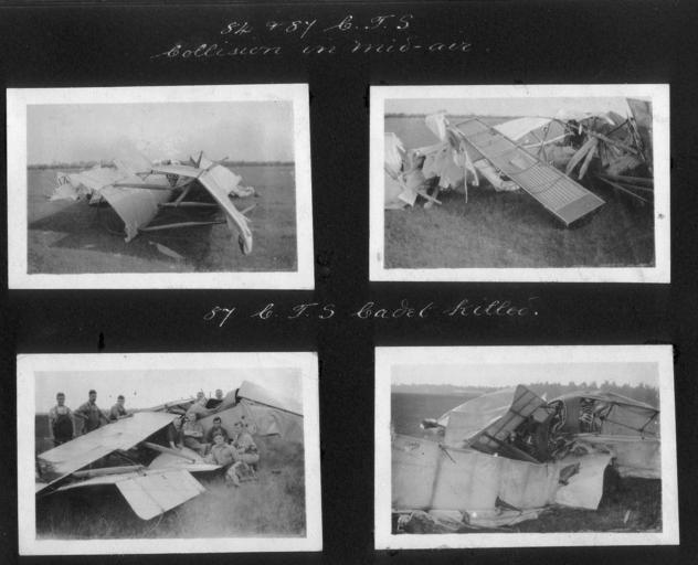 Keywords: royal flying corps royalflyingcorps world war i worldwari curtiss jn-4 curtissjn4 crashes blackandwhite monochrome window architecture black and white "84 & 87 C.T.S Collision in mid-air" "87 C.T.S. Cadet killed" One of the crashed aircraft was number C617. This accident took place on August 16th, 1917. The cadet who was killed was William Sidney Gallie, of Winnipeg. Photos from an album that belonged to Christopher Paulus Devos, a sergeant in the Royal Flying Corps who was an instructor for 84 Canadian Training Squadron, based at Camp Mohawk, near Deseronto, Ontario. "84 & 87 C.T.S Collision in mid-air" "87 C.T.S. Cadet killed" One of the crashed aircraft was number C617. This accident took place on August 16th, 1917. The cadet who was killed was William Sidney Gallie, of Winnipeg. Photos from an album that belonged to Christopher Paulus Devos, a sergeant in the Royal Flying Corps who was an instructor for 84 Canadian Training Squadron, based at Camp Mohawk, near Deseronto, Ontario. |