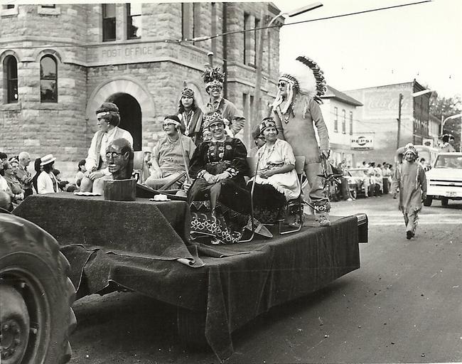 Keywords: parades mohawks post office postoffice 1970s Photograph of people on a tractor-drawn float in the Centennial Parade held in Deseronto, Ontario, on Thursday, 17th June, 1971. Taken on Main Street, in front of the Post Office. From a collection of materials relating to the 1971 centennial of Deseronto's incorporation as a village. Photograph believed to have been taken by Lloyd Thompson for The Quinte Scanner. Update, 7 May 2014: the woman on the left has been identified as Sally Brant. Woman standing at back: Dorothy Green, next to David Maracle. Woman in dark dress: Vivian Brant, man standing at right, [Peewee] Brant. Photograph of people on a tractor-drawn float in the Centennial Parade held in Deseronto, Ontario, on Thursday, 17th June, 1971. Taken on Main Street, in front of the Post Office. From a collection of materials relating to the 1971 centennial of Deseronto's incorporation as a village. Photograph believed to have been taken by Lloyd Thompson for The Quinte Scanner. Update, 7 May 2014: the woman on the left has been identified as Sally Brant. Woman standing at back: Dorothy Green, next to David Maracle. Woman in dark dress: Vivian Brant, man standing at right, [Peewee] Brant. |