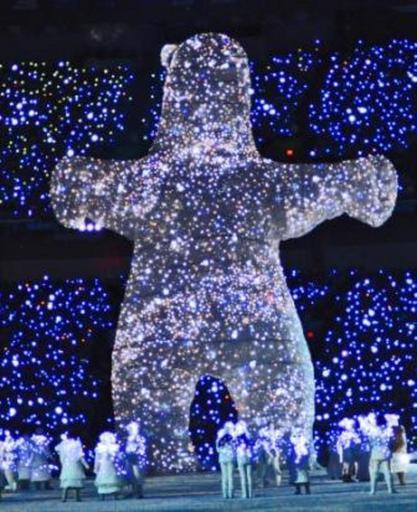 Keywords: 2010 Winter Olympics opening ceremony spirit bear puppet.jpg A 20-meter tall spirit bear puppet dances with the dancers during the 2010 Winter Olympics opening ceremony in Vancouver 2010-02-12 http //www1 voanews com/english/news/photos/84303762 html David Byrd PD-USGov-VOA Files by User BrokenSphere 2010 Winter Olympics opening ceremony |