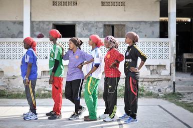| Keywords: amisom au au/un ist auunist africa mogadishu somalia tobin jones tobinjones athletes athletics ball basketball boys competing girls men play playing practice sports training women team sport sport outdoor Girls line up during a basketball drill in Mogadishu, Somalia, on June 6. Banned under the extremist group, Al Shabaab, Basketball is once again making a resurgence in Mogadishu. Today at least a dozen teams in the city play in a league and both men and women are coming out to play the sport. AU UN IST PHOTO / TOBIN JONES Girls line up during a basketball drill in Mogadishu, Somalia, on June 6. Banned under the extremist group, Al Shabaab, Basketball is once again making a resurgence in Mogadishu. Today at least a dozen teams in the city play in a league and both men and women are coming out to play the sport. AU UN IST PHOTO / TOBIN JONES Girls line up during a basketball drill in Mogadishu, Somalia, on June 6. Banned under the extremist group, Al Shabaab, Basketball is once again making a resurgence in Mogadishu. Today at least a dozen teams in the city play in a league and both men and women are coming out to play the sport. AU UN IST PHOTO / TOBIN JONES africa girls playing men sports boys basketball training ball athletics women play au practice athletes somalia competing mogadishu amisom auunist tobinjones |