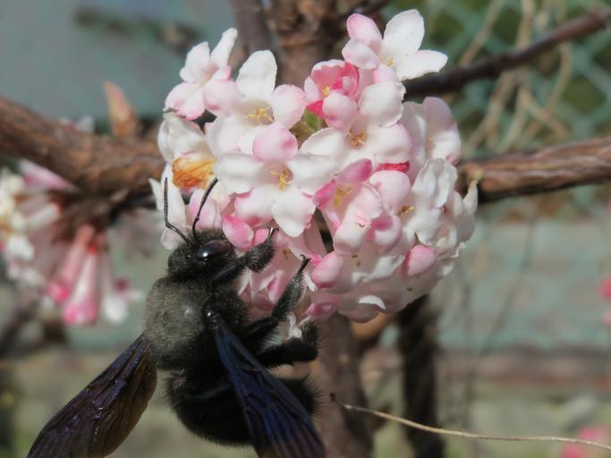 MAKE A MEME View Large Image 20150308Viburnum x bodnantense3.jpg Große Holzbiene Xylocopa violacea an einem Bodnant-Schneeball Viburnum × bodnantense in Hockenheim own AnRo0002 2015-03-08 Cc-zero Ornamental plants in Hockenheim Dipsacales Viburnum × bodnantense 03 ...