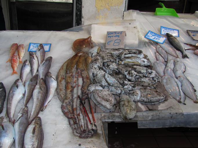 Keywords: Inktvis food fish public market object stall nopeople greece creativecommons octopus corfu kerkyra fishmarket streetview vak grc cc0 ágiosrókkos coeluc vak201505corfu