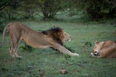 | Keywords: kenya maasai mara national reserve ol kinyei porini gamewatchers wildlife management nature conservation environment conservancy employment community guide tracker tourism tourists safari holiday outdoor animal carnivore KENYA, Ol Kinyei, Maasai Mara: In a photograph taken by Make It Kenya 13 June 2015, a male lion stretches while a lioness rests in the Ol Kinyei Conservancy in Kenya's Maasai Mara, during a prolonged mating session, which sees them copulate roughly every 15mins during a 48hr period. The management of Ol Kinyei and similar conservancies bordering the Maasai Mara National Reserve and in other areas of Kenya is an alternative approach to wildlife conservation. The land on which the conservancies are located is leased from local communities who directly benefit from its use to naturally host and protect wildlife populations. The privately owned and managed conservancies also offer employment to members of these communities and further opportunity of training in different areas of expertise from guides and trackers to chefs and camp management. Strict regulation of visitor numbers and the construction of camps inside the conservancies also limit the amount of people and vehicles present at any given time, offering tourists a much more personal and exclusive wildlife safari experience while at the same time reducing stress on and the disturbance of wildlife populations, which quickly begin to return and repopulate areas and land transformed under the conservancy model. MANDATORY CREDIT: MAKE IT KENYA PHOTO / STUART PRICE. KENYA, Ol Kinyei, Maasai Mara: In a photograph taken by Make It Kenya 13 June 2015, a male lion stretches while a lioness rests in the Ol Kinyei Conservancy in Kenya's Maasai Mara, during a prolonged mating session, which sees them copulate roughly every 15mins during a 48hr period. The management of Ol Kinyei and similar conservancies bordering the Maasai Mara National Reserve and in other areas of Kenya is an alternative approach to wildlife conservation. The land on which the conservancies are located is leased from local communities who directly benefit from its use to naturally host and protect wildlife populations. The privately owned and managed conservancies also offer employment to members of these communities and further opportunity of training in different areas of expertise from guides and trackers to chefs and camp management. Strict regulation of visitor numbers and the construction of camps inside the conservancies also limit the amount of people and vehicles present at any given time, offering tourists a much more personal and exclusive wildlife safari experience while at the same time reducing stress on and the disturbance of wildlife populations, which quickly begin to return and repopulate areas and land transformed under the conservancy model. MANDATORY CREDIT: MAKE IT KENYA PHOTO / STUART PRICE. |