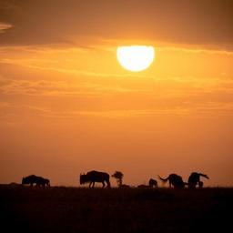 Keywords: kenya maasai mara national reserve ol kinyei porini gamewatchers wildlife management nature conservation environment conservancy employment community guide tracker tourism tourists safari holiday sunset sky outdoor landscape seaside shore KENYA, Ol Kinyei, Maasai Mara: In a photograph taken by Make It Kenya 14 June 2015, wildebeest are silhouetted as the sun rises over the Ol Kinyei Conservancy in Kenya's Maasai Mara. The management of Ol Kinyei and similar conservancies bordering the Maasai Mara National Reserve and in other areas of Kenya is an alternative approach to wildlife conservation. The land on which the conservancies are located is leased from local communities who directly benefit from its use to naturally host and protect wildlife populations. The privately owned and managed conservancies also offer employment to members of these communities and further opportunity of training in different areas of expertise from guides and trackers to chefs and camp management. Strict regulation of visitor numbers and the construction of camps inside the conservancies also limit the amount of people and vehicles present at any given time, offering tourists a much more personal and exclusive wildlife safari experience while at the same time reducing stress on and the disturbance of wildlife populations, which quickly begin to return and repopulate areas and land transformed under the conservancy model. MANDATORY CREDIT: MAKE IT KENYA PHOTO / STUART PRICE. KENYA, Ol Kinyei, Maasai Mara: In a photograph taken by Make It Kenya 14 June 2015, wildebeest are silhouetted as the sun rises over the Ol Kinyei Conservancy in Kenya's Maasai Mara. The management of Ol Kinyei and similar conservancies bordering the Maasai Mara National Reserve and in other areas of Kenya is an alternative approach to wildlife conservation. The land on which the conservancies are located is leased from local communities who directly benefit from its use to naturally host and protect wildlife populations. The privately owned and managed conservancies also offer employment to members of these communities and further opportunity of training in different areas of expertise from guides and trackers to chefs and camp management. Strict regulation of visitor numbers and the construction of camps inside the conservancies also limit the amount of people and vehicles present at any given time, offering tourists a much more personal and exclusive wildlife safari experience while at the same time reducing stress on and the disturbance of wildlife populations, which quickly begin to return and repopulate areas and land transformed under the conservancy model. MANDATORY CREDIT: MAKE IT KENYA PHOTO / STUART PRICE.