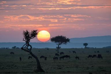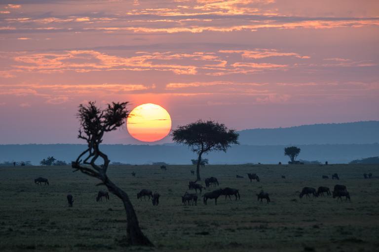 MAKE A MEME View Large Image Maasai Mara: In a photograph taken by Make It Kenya 15 June 2015, Wildebeest graze on the grassland savannah as the sun rises over the Ol Kinyei Conservancy in Kenya's Maasai Mara. The management of Ol Kinyei and similar conservancies ...