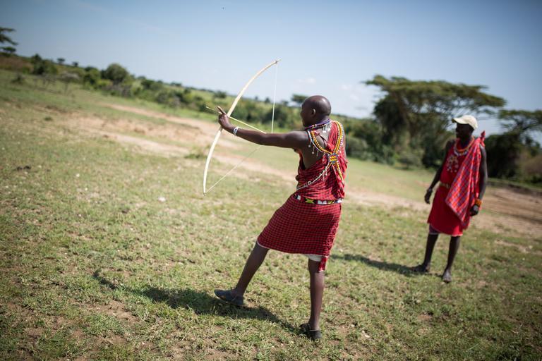 MAKE A MEME View Large Image Maasai Mara: In a photograph taken by Make It Kenya 15 June 2015, a Maasai guide shoots a traditional hunting bow and arrow during a walking safari with Phil Edwards, a repeat, yearly vistor to Porini Mara Camp in the Ol Kinyei Conservancy ...