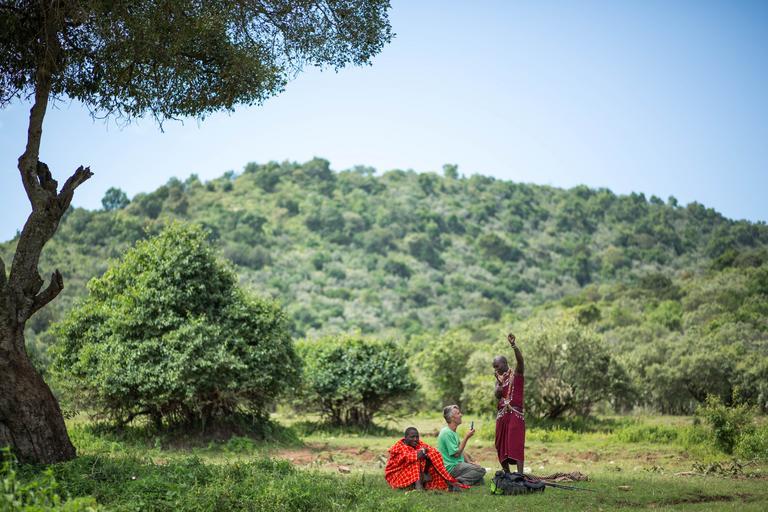 | Keywords: kenya travel tourism culture tradition maasai mara national reserve north conservancy wildlife conservation walking village manyatta traditional contemporary lifestyles modern world 21st century change development outdoor KENYA, Maasai Mara: In a photograph taken by Make It Kenya 24 June 2015, author and travel writer Stuart Butler and his Maasai guide and companion Josphat Mako listen to a Maasai known as Lemeria as he narrates a story in the Mara North Conservancy adjacent to Kenya's world famous Maasai Mara National Reserve. Throughout the months of May and June, Stuart and Mako walked over 200km across traditional lands belonging to Kenya's Maasai. Embarking from the high, remote and forested Loita Hills they headed west, skirting the edge of the world famous Maasai Mara National Reserve, passing through private and community conservancies before finishing at the foot of the Oloololo Escarpment. During the expedition, Stuart and Mako visited numerous Maasai villages known as manyattas spending time with both past and present generations of Maasai people, learning about their traditional cultures and contemporary Maasai lifestyles, and the pressure of the modern world and the 21st Century, conservation, political pressures and tourism, all of which influence and contribute to Maasai life today. MANDATORY CREDIT: MAKE IT KENYA PHOTO / STUART PRICE. KENYA, Maasai Mara: In a photograph taken by Make It Kenya 24 June 2015, author and travel writer Stuart Butler and his Maasai guide and companion Josphat Mako listen to a Maasai known as Lemeria as he narrates a story in the Mara North Conservancy adjacent to Kenya's world famous Maasai Mara National Reserve. Throughout the months of May and June, Stuart and Mako walked over 200km across traditional lands belonging to Kenya's Maasai. Embarking from the high, remote and forested Loita Hills they headed west, skirting the edge of the world famous Maasai Mara National Reserve, passing through private and community conservancies before finishing at the foot of the Oloololo Escarpment. During the expedition, Stuart and Mako visited numerous Maasai villages known as manyattas spending time with both past and present generations of Maasai people, learning about their traditional cultures and contemporary Maasai lifestyles, and the pressure of the modern world and the 21st Century, conservation, political pressures and tourism, all of which influence and contribute to Maasai life today. MANDATORY CREDIT: MAKE IT KENYA PHOTO / STUART PRICE. |