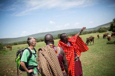 MAKE A MEME View Large Image Maasai Mara: In a photograph taken by Make It Kenya 24 June 2015, author and travel writer Stuart Butler and his Maasai guide and companion Josphat Mako talk with a Maasai known as Lemeria in the Mara North Conservancy adjacent to Kenya's ...
