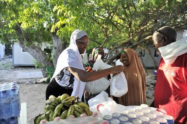 Keywords: outdoor Deputy Head of AMISOM, Hon. Lydia Wanyoto, hands a paper bag of food to a lady during foodstuff distribution to less fortunate families around Wadajir district in Mogadishu, Somalia on July 05 2015. The food was donated by Emirates Red Crescent and distributed by the African Union Mission in Somalia (AMISOM) . AMISOM Photo / Ilyas Ahmed Deputy Head of AMISOM, Hon. Lydia Wanyoto, hands a paper bag of food to a lady during foodstuff distribution to less fortunate families around Wadajir district in Mogadishu, Somalia on July 05 2015. The food was donated by Emirates Red Crescent and distributed by the African Union Mission in Somalia (AMISOM) . AMISOM Photo / Ilyas Ahmed