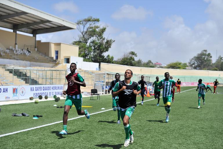 | Keywords: outdoor The Somalia national soccer team seen doing drills during a training session at Banadir stadium in Mogadishu on August 29 2015, in preparation for the upcoming World Cup Qualifiers. Sports in Somalia is recovering as a result of the relative peace and progress witnessed in the country. AMISOM Photo / Ilyas Ahmed The Somalia national soccer team seen doing drills during a training session at Banadir stadium in Mogadishu on August 29 2015, in preparation for the upcoming World Cup Qualifiers. Sports in Somalia is recovering as a result of the relative peace and progress witnessed in the country. AMISOM Photo / Ilyas Ahmed |
