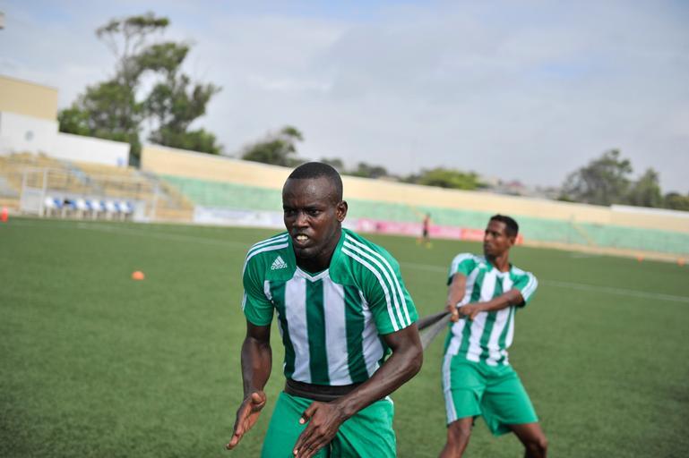 Keywords: outdoor The Somalia national soccer team seen doing drills during a training session at Banadir stadium in Mogadishu on August 29 2015, in preparation for the upcoming World Cup Qualifiers. Sports in Somalia is recovering as a result of the relative peace and progress witnessed in the country. AMISOM Photo / Ilyas Ahmed The Somalia national soccer team seen doing drills during a training session at Banadir stadium in Mogadishu on August 29 2015, in preparation for the upcoming World Cup Qualifiers. Sports in Somalia is recovering as a result of the relative peace and progress witnessed in the country. AMISOM Photo / Ilyas Ahmed |