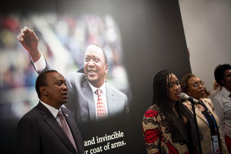 | Keywords: make it kenya campaign launch president uhuru kenyatta magicalkenya whyilovekenya tembeakenya kenyaliving proudlykenyan businessafrica businessinafrica investmentkenya kenyameansbusiness investinkenya brandkenya africarising business commerce trade investment ITALY, Milan: In a photograph taken by Make It Kenya, 8 September 2015, Kenyan President Uhuru Kenyatta and singer Kavi Pratt sing the national anthem of Kenya at the Make It Kenya international brand campaign launch in the Italian city of Milan. Introduced by the Ministry of East African Affairs, Commerce and Tourism (MEAACT) to promote and enhance Kenya’s position as a global leader in tourism, commerce and investment, the VIP event at Kenya House, an extension of Kenya’s Expo pavilion that is located in the centre of Milan and being used to further showcase Kenya’s cultural and economic assets, saw President Kenyatta officially activate the new digital portal MakeItKenya.com and supporting social media platforms. The digital elements have been specifically designed as a source of rich sharable content that will connect the world to Kenya, through people’s computers, smart phones and digital devices. MANDATORY CREDIT: MAKE IT KENYA PHOTO / STUART PRICE. ITALY, Milan: In a photograph taken by Make It Kenya, 8 September 2015, Kenyan President Uhuru Kenyatta and singer Kavi Pratt sing the national anthem of Kenya at the Make It Kenya international brand campaign launch in the Italian city of Milan. Introduced by the Ministry of East African Affairs, Commerce and Tourism (MEAACT) to promote and enhance Kenya’s position as a global leader in tourism, commerce and investment, the VIP event at Kenya House, an extension of Kenya’s Expo pavilion that is located in the centre of Milan and being used to further showcase Kenya’s cultural and economic assets, saw President Kenyatta officially activate the new digital portal MakeItKenya.com and supporting social media platforms. The digital elements have been specifically designed as a source of rich sharable content that will connect the world to Kenya, through people’s computers, smart phones and digital devices. MANDATORY CREDIT: MAKE IT KENYA PHOTO / STUART PRICE. |