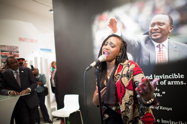 | Keywords: make it kenya campaign launch president uhuru kenyatta magicalkenya whyilovekenya tembeakenya kenyaliving proudlykenyan businessafrica businessinafrica investmentkenya kenyameansbusiness investinkenya brandkenya africarising business commerce trade investment people ITALY, Milan: In a photograph taken by Make It Kenya, 8 September 2015, Kenyan singer Kavi Pratt performs for an invited audience as Kenyan President Uhuru Kenyatta looks on at the official launch of the Make It Kenya international brand campaign in the Italian city of Milan. Introduced by MEAACT to promote and enhance Kenya’s position as a global leader in tourism, commerce and investment, the VIP event at Kenya House, an extension of Kenya’s Expo pavilion that is located in the centre of Milan and being used to further showcase Kenya’s cultural and economic assets, saw President Kenyatta officially activate the new digital portal MakeItKenya.com and supporting social media platforms. The digital elements have been specifically designed as a source of rich sharable content that will connect the world to Kenya, through people’s computers, smart phones and digital devices. MANDATORY CREDIT: MAKE IT KENYA PHOTO / STUART PRICE. ITALY, Milan: In a photograph taken by Make It Kenya, 8 September 2015, Kenyan singer Kavi Pratt performs for an invited audience as Kenyan President Uhuru Kenyatta looks on at the official launch of the Make It Kenya international brand campaign in the Italian city of Milan. Introduced by MEAACT to promote and enhance Kenya’s position as a global leader in tourism, commerce and investment, the VIP event at Kenya House, an extension of Kenya’s Expo pavilion that is located in the centre of Milan and being used to further showcase Kenya’s cultural and economic assets, saw President Kenyatta officially activate the new digital portal MakeItKenya.com and supporting social media platforms. The digital elements have been specifically designed as a source of rich sharable content that will connect the world to Kenya, through people’s computers, smart phones and digital devices. MANDATORY CREDIT: MAKE IT KENYA PHOTO / STUART PRICE. |