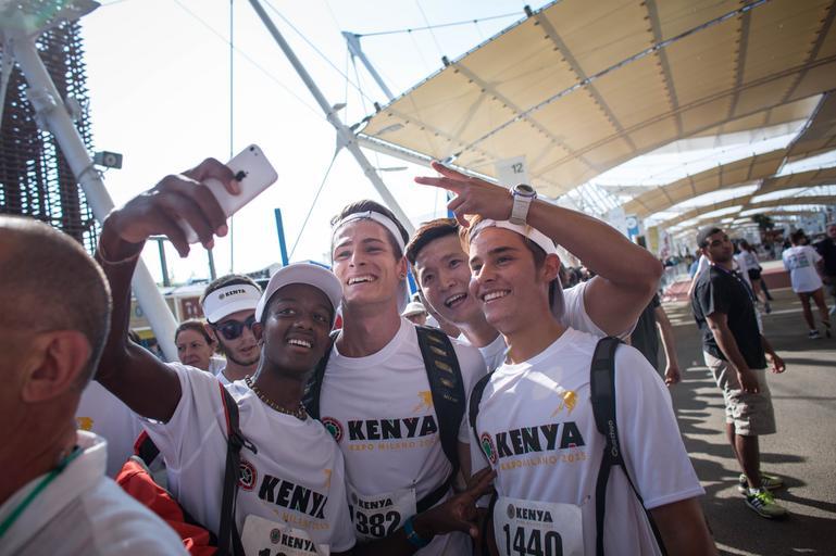 | Keywords: kenya italy milan expo 2015 traditional singing dancing song dance race marathon athletes runners run 3km 10km music celebration showcase world coffee nation tourism investment ITALY, Milan: In a photograph taken by Make It Kenya 10 September 2015, runners take a selfie photograph at the finish line of ta 3km family fun run outside the Kenya Pavilion having just finished the race. Part of Kenyan Week celebrations at Expo Milan 2015, a universal exhibition and platform for the exchange of ideas and shared solutions on the theme of food, a number of events were held in Milan to mark the occasion, incluing the 3km family fun run completed by Hon. Phyllis Kandie, Minister for East Afrian Affairs, Commerce and Tourism (MEAACT) and the Kenya Expo Run With The Champions 10km race in which some of Kenyans top athletes competed against professional and enthusiast runners alike. MANDATORY CREDIT: MAKE IT KENYA PHOTO / STUART PRICE. ITALY, Milan: In a photograph taken by Make It Kenya 10 September 2015, runners take a selfie photograph at the finish line of ta 3km family fun run outside the Kenya Pavilion having just finished the race. Part of Kenyan Week celebrations at Expo Milan 2015, a universal exhibition and platform for the exchange of ideas and shared solutions on the theme of food, a number of events were held in Milan to mark the occasion, incluing the 3km family fun run completed by Hon. Phyllis Kandie, Minister for East Afrian Affairs, Commerce and Tourism (MEAACT) and the Kenya Expo Run With The Champions 10km race in which some of Kenyans top athletes competed against professional and enthusiast runners alike. MANDATORY CREDIT: MAKE IT KENYA PHOTO / STUART PRICE. |