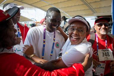 | Keywords: kenya italy milan expo 2015 traditional singing dancing song dance race marathon athletes runners run 3km 10km music celebration showcase world coffee nation tourism investment people groupshot ITALY, Milan: In a photograph taken by Make It Kenya 10 September 2015, Hon. Phyllis Kandie, Minister for East Afrian Affairs, Commerce and Tourism (MEAACT) is congratulated by former world champion marathon runner Paul Tergat, having just crossed the finish line of a 3km family fun run as part of a number of events held in Milan this week to mark the Kenyan Week celebrations at Expo Milan 2015, a universal exhibition and platform for the exchange of ideas and shared solutions on the theme of food. MANDATORY CREDIT: MAKE IT KENYA PHOTO / STUART PRICE. ITALY, Milan: In a photograph taken by Make It Kenya 10 September 2015, Hon. Phyllis Kandie, Minister for East Afrian Affairs, Commerce and Tourism (MEAACT) is congratulated by former world champion marathon runner Paul Tergat, having just crossed the finish line of a 3km family fun run as part of a number of events held in Milan this week to mark the Kenyan Week celebrations at Expo Milan 2015, a universal exhibition and platform for the exchange of ideas and shared solutions on the theme of food. MANDATORY CREDIT: MAKE IT KENYA PHOTO / STUART PRICE. |