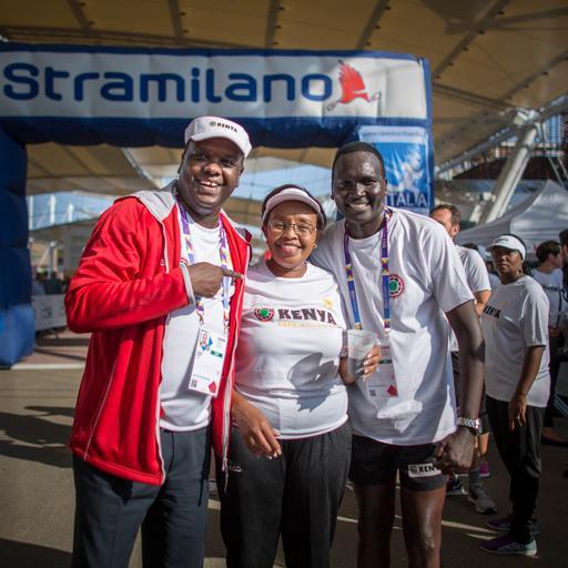 | Keywords: kenya italy milan expo 2015 traditional singing dancing song dance race marathon athletes runners run 3km 10km music celebration showcase world coffee nation tourism investment outdoor ITALY, Milan: In a photograph taken by Make It Kenya 10 September 2015, Hon. Phyllis Kandie, Cabinet Secreatray for East Afrian Affairs, Commerce and Tourism (MEAACT) stands with former world champion marathon runner Paul Tergat (right), having just crossed the finish line of a 3km family fun run as part of a number of events held in Milan this week to mark the Kenyan Week celebrations at Expo Milan 2015, a universal exhibition and platform for the exchange of ideas and shared solutions on the theme of food. MANDATORY CREDIT: MAKE IT KENYA PHOTO / STUART PRICE. ITALY, Milan: In a photograph taken by Make It Kenya 10 September 2015, Hon. Phyllis Kandie, Cabinet Secreatray for East Afrian Affairs, Commerce and Tourism (MEAACT) stands with former world champion marathon runner Paul Tergat (right), having just crossed the finish line of a 3km family fun run as part of a number of events held in Milan this week to mark the Kenyan Week celebrations at Expo Milan 2015, a universal exhibition and platform for the exchange of ideas and shared solutions on the theme of food. MANDATORY CREDIT: MAKE IT KENYA PHOTO / STUART PRICE. |