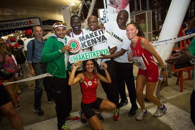 MAKE A MEME View Large Image Make It Kenya, 10 September 2015, former world champion marathon runner Paul Tergat poses for photographs with fellow runners at the finish line of the Kenya Expo 'Run With The Champions' 10km race held at Expo Milan 2015. Kenyan runner ...