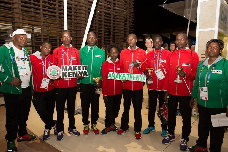 | Keywords: kenya italy milan expo 2015 traditional singing dancing song dance race marathon athletes runners run 3km 10km music celebration showcase world coffee nation tourism investment team sport sport ITALY, Milan: In a photograph taken by Make It Kenya 10 September 2015, members of the Kenyan running team stand for a photograph at the finish line of the Kenya Expo 'Run With The Champions' 10km race held at Expo Milan 2015. Kenyan runner Thomas James Lokomwa won the race with second place Geoffrey Kiprono Ngetich coming in ahead of Silas Muturi Gichovi making a clean Kenyan 1-2-3. The race, along with a family 3km fun-run which took place earlier in the day, was one of a number of events held in Milan this week to mark the Kenyan Week celebrations at Expo Milan 2015, a universal exhibition and platform for the exchange of ideas and shared solutions on the theme of food. MANDATORY CREDIT: MAKE IT KENYA PHOTO / STUART PRICE. ITALY, Milan: In a photograph taken by Make It Kenya 10 September 2015, members of the Kenyan running team stand for a photograph at the finish line of the Kenya Expo 'Run With The Champions' 10km race held at Expo Milan 2015. Kenyan runner Thomas James Lokomwa won the race with second place Geoffrey Kiprono Ngetich coming in ahead of Silas Muturi Gichovi making a clean Kenyan 1-2-3. The race, along with a family 3km fun-run which took place earlier in the day, was one of a number of events held in Milan this week to mark the Kenyan Week celebrations at Expo Milan 2015, a universal exhibition and platform for the exchange of ideas and shared solutions on the theme of food. MANDATORY CREDIT: MAKE IT KENYA PHOTO / STUART PRICE. |