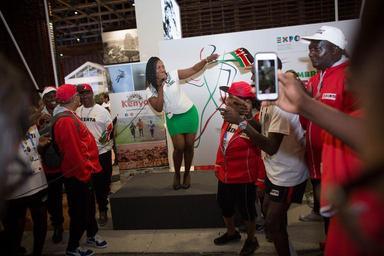 | Keywords: kenya italy milan expo 2015 traditional singing dancing song dance race marathon athletes runners run 3km 10km music celebration showcase world coffee nation tourism investment ITALY, Milan: In a photograph taken by Make It Kenya 10 September 2015, Kenyan singer Kavi Pratt performs her song Twende Mbele at the finish line of the Kenya Expo 'Run With The Champions' 10km race held at Expo Milan 2015. Kenyan runner Thomas James Lokomwa won the race with second place Geoffrey Kiprono Ngetich coming in ahead of Silas Muturi Gichovi making a clean Kenyan 1-2-3. The race, along with a family 3km fun-run which took place earlier in the day, was one of a number of events held in Milan this week to mark the Kenyan Week celebrations at Expo Milan 2015, a universal exhibition and platform for the exchange of ideas and shared solutions on the theme of food. MANDATORY CREDIT: MAKE IT KENYA PHOTO / STUART PRICE. ITALY, Milan: In a photograph taken by Make It Kenya 10 September 2015, Kenyan singer Kavi Pratt performs her song Twende Mbele at the finish line of the Kenya Expo 'Run With The Champions' 10km race held at Expo Milan 2015. Kenyan runner Thomas James Lokomwa won the race with second place Geoffrey Kiprono Ngetich coming in ahead of Silas Muturi Gichovi making a clean Kenyan 1-2-3. The race, along with a family 3km fun-run which took place earlier in the day, was one of a number of events held in Milan this week to mark the Kenyan Week celebrations at Expo Milan 2015, a universal exhibition and platform for the exchange of ideas and shared solutions on the theme of food. MANDATORY CREDIT: MAKE IT KENYA PHOTO / STUART PRICE. |
