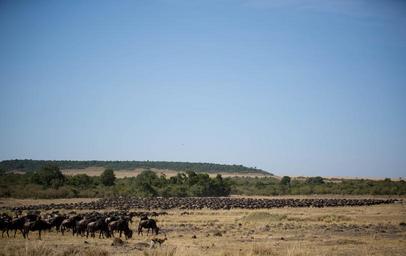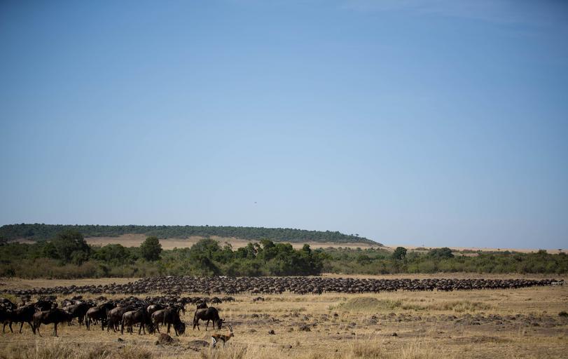 Keywords: outdoor sky KENYA, Masai Mara: In a photograph taken by Make It Kenya 29 September 2015, a large group of wildebeest gathers on the savannah near the Mara River in Kenya's world famous Masai Mara National Reserve. Every year, hundreds of thousands of wildebeest, zebra and other ungulate animals migrate between Tanzania's Serengeti and Kenya's Masai Mara in a year-long, continuous cycle, which sees the animals travel thousands of kilometres and is known as one of the seven natural wonders of the world, and is a major draw for wildlife enthusiasts and tourists from around the world. MANDATORY CREDIT: MAKE IT KENYA PHOTO / STUART PRICE. KENYA, Masai Mara: In a photograph taken by Make It Kenya 29 September 2015, a large group of wildebeest gathers on the savannah near the Mara River in Kenya's world famous Masai Mara National Reserve. Every year, hundreds of thousands of wildebeest, zebra and other ungulate animals migrate between Tanzania's Serengeti and Kenya's Masai Mara in a year-long, continuous cycle, which sees the animals travel thousands of kilometres and is known as one of the seven natural wonders of the world, and is a major draw for wildlife enthusiasts and tourists from around the world. MANDATORY CREDIT: MAKE IT KENYA PHOTO / STUART PRICE.