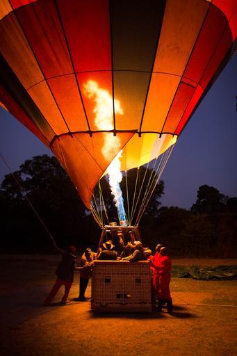 | Keywords: KENYA, Masai Mara: In a photograph taken by Make It Kenya 30 September 2015, people watch a gas is flared into a Governor's Balloon Safari hot air balloon in preparation for a flight over the Masai Mara National Reserve. Seeing the Mara from the air requires an early start in order to be airborne for the sunrise, but offers tourists visiting the famous wildlife reserve a unique and panoramic way to view one of Kenya's most famous natural attractions from the basket of a hot air balloon. MANDATORY CREDIT: MAKE IT KENYA PHOTO / STUART PRICE. KENYA, Masai Mara: In a photograph taken by Make It Kenya 30 September 2015, people watch a gas is flared into a Governor's Balloon Safari hot air balloon in preparation for a flight over the Masai Mara National Reserve. Seeing the Mara from the air requires an early start in order to be airborne for the sunrise, but offers tourists visiting the famous wildlife reserve a unique and panoramic way to view one of Kenya's most famous natural attractions from the basket of a hot air balloon. MANDATORY CREDIT: MAKE IT KENYA PHOTO / STUART PRICE. |