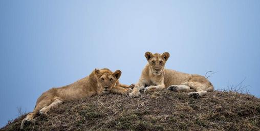 Keywords: outdoor animal sheep KENYA, Masai Mara: In a photograph taken by Make It Kenya 01 October 2015, two sub-adult members of the Marsh Pride sit atop an earthen mound on the savannah of the Masai Mara National Reserve. During the months of July through to October, one of nature's greatest events takes place in the Mara when hundreds of thousands of wildebeest, zebra and other ungulates migrate northwards from Tanzania's Serengeti in search of fresh pasture and grazing, before turning and heading south again in a journey that covers thousands of kilometres and is known as one of the seven natural wonders of the world, making it a major draw for wildlife enthusiasts and tourists from around the globe. MANDATORY CREDIT: MAKE IT KENYA PHOTO / STUART PRICE. KENYA, Masai Mara: In a photograph taken by Make It Kenya 01 October 2015, two sub-adult members of the Marsh Pride sit atop an earthen mound on the savannah of the Masai Mara National Reserve. During the months of July through to October, one of nature's greatest events takes place in the Mara when hundreds of thousands of wildebeest, zebra and other ungulates migrate northwards from Tanzania's Serengeti in search of fresh pasture and grazing, before turning and heading south again in a journey that covers thousands of kilometres and is known as one of the seven natural wonders of the world, making it a major draw for wildlife enthusiasts and tourists from around the globe. MANDATORY CREDIT: MAKE IT KENYA PHOTO / STUART PRICE.