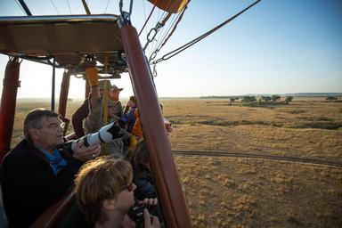 Keywords: KENYA, Masai Mara: In a photograph taken by Make It Kenya 02 October 2015, tourists take photographs and look out from the basket of a Governor's Balloon Safari hot air balloon as it floats along the course of the Mara River just after sunrise. Seeing the Mara from the air requires an early start in order to be airborne for the sunrise, but offers tourists visiting the famous wildlife reserve a unique and panoramic way to view one of Kenya's most famous natural attractions from the basket of a hot air balloon. MANDATORY CREDIT: MAKE IT KENYA PHOTO / STUART PRICE. KENYA, Masai Mara: In a photograph taken by Make It Kenya 02 October 2015, tourists take photographs and look out from the basket of a Governor's Balloon Safari hot air balloon as it floats along the course of the Mara River just after sunrise. Seeing the Mara from the air requires an early start in order to be airborne for the sunrise, but offers tourists visiting the famous wildlife reserve a unique and panoramic way to view one of Kenya's most famous natural attractions from the basket of a hot air balloon. MANDATORY CREDIT: MAKE IT KENYA PHOTO / STUART PRICE.