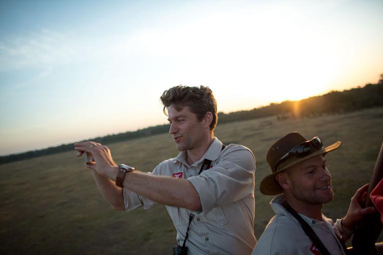 | Keywords: KENYA, Masai Mara: In a photograph taken by Make It Kenya 02 October 2015, Andre Van Kets (left) and Carel Verheof, Co-founders of the website discoverafrica.com/herdtracker, and resource that tracks the annual wildebeest migration in Kenya's Masai Nara National Reserve and Tanzania's Serengeti, live-streams video over the internet via the Twitter application Periscope as a Governor's Balloon Safari floats along the course of the Mara River. Seeing the Mara from the air requires an early start in order to be airborne for the sunrise, but offers tourists visiting the famous wildlife reserve a unique and panoramic way to view one of Kenya's most famous natural attractions from the basket of a hot air balloon. MANDATORY CREDIT: MAKE IT KENYA PHOTO / STUART PRICE. KENYA, Masai Mara: In a photograph taken by Make It Kenya 02 October 2015, Andre Van Kets (left) and Carel Verheof, Co-founders of the website discoverafrica.com/herdtracker, and resource that tracks the annual wildebeest migration in Kenya's Masai Nara National Reserve and Tanzania's Serengeti, live-streams video over the internet via the Twitter application Periscope as a Governor's Balloon Safari floats along the course of the Mara River. Seeing the Mara from the air requires an early start in order to be airborne for the sunrise, but offers tourists visiting the famous wildlife reserve a unique and panoramic way to view one of Kenya's most famous natural attractions from the basket of a hot air balloon. MANDATORY CREDIT: MAKE IT KENYA PHOTO / STUART PRICE. |
