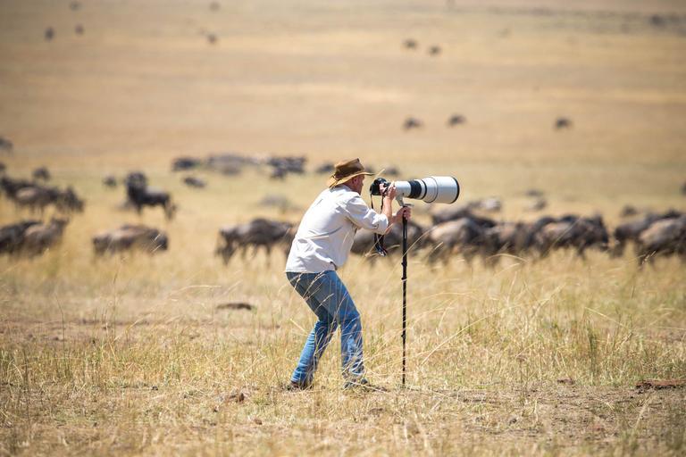 Keywords: outdoor KENYA, Masai Mara: In a photograph taken by Make It Kenya 03 October 2015, Carel Verhoef, co-founder of HerdTracker films herds of wildebeest on the savannah in the Mara Triangle, part of Kenya's wider Masai Mara ecosystem. During the months of July through to October, one of nature's greatest events takes place in the Mara when hundreds of thousands of wildebeest, zebra and other ungulates migrate northwards from Tanzania's Serengeti in search of fresh pasture and grazing, before turning and heading south again in a journey that covers thousands of kilometres and is known as one of the seven natural wonders of the world, making it a major draw for wildlife enthusiasts and tourists from around the globe. MANDATORY CREDIT: MAKE IT KENYA PHOTO / STUART PRICE. KENYA, Masai Mara: In a photograph taken by Make It Kenya 03 October 2015, Carel Verhoef, co-founder of HerdTracker films herds of wildebeest on the savannah in the Mara Triangle, part of Kenya's wider Masai Mara ecosystem. During the months of July through to October, one of nature's greatest events takes place in the Mara when hundreds of thousands of wildebeest, zebra and other ungulates migrate northwards from Tanzania's Serengeti in search of fresh pasture and grazing, before turning and heading south again in a journey that covers thousands of kilometres and is known as one of the seven natural wonders of the world, making it a major draw for wildlife enthusiasts and tourists from around the globe. MANDATORY CREDIT: MAKE IT KENYA PHOTO / STUART PRICE.