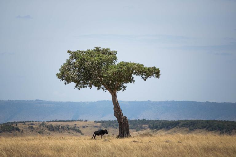 MAKE A MEME View Large Image Masai Mara: In a photograph taken by Make It Kenya 03 October 2015, a lone wildebeest stands in the shade of a tree on the savannah in the Mara Triangle, part of Kenya's wider Masai Mara ecosystem, as they make their way south towards ...