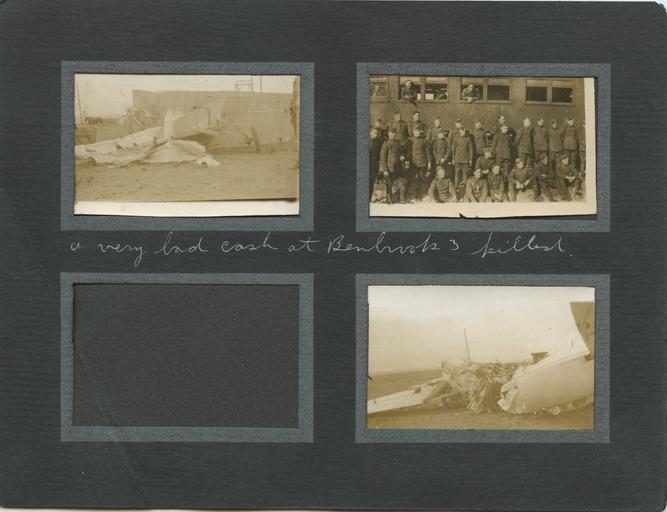 | Keywords: 1910s world war i worldwari royal flying corps royalflyingcorps royal air force royalairforce trains crashes aircraft "a very bad crash at Benbrook [Texas] 3 killed" photos of crashes and a photo of men standing in front of a railway car. Photographs taken by Harry McBride (1893-1969), who worked as a rigger in the Royal Flying Corps and Royal Air Force during the First World War. He was stationed at Camp Mohawk near Deseronto, Ontario, and also at Camp Taliaferro near Fort Worth, Texas. Scanned images donated to the Archives by Dan McBride, Harry's grandson. "a very bad crash at Benbrook [Texas] 3 killed" photos of crashes and a photo of men standing in front of a railway car. Photographs taken by Harry McBride (1893-1969), who worked as a rigger in the Royal Flying Corps and Royal Air Force during the First World War. He was stationed at Camp Mohawk near Deseronto, Ontario, and also at Camp Taliaferro near Fort Worth, Texas. Scanned images donated to the Archives by Dan McBride, Harry's grandson. |
