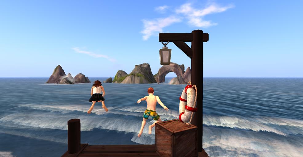 MAKE A MEME View Large Image boy girl pier beach sea shore fun sport dive jump outdoor Jumping from the pier at the lonely beach with my newfound company Jumping from the pier at the lonely beach with my newfound company