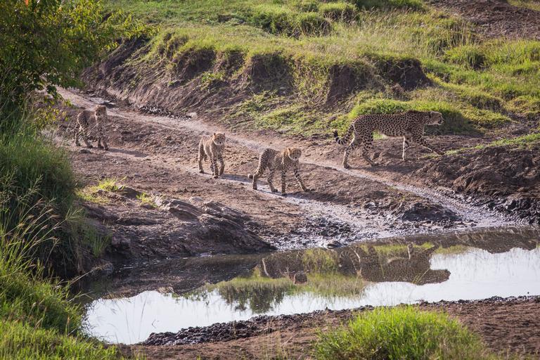 MAKE A MEME View Large Image Masai Mara: In a photpgraph taken by Make It Kenya 09 January 2016, a female cheetah known as Amani and three cubs are reflected in water as they walk along a river in the Olare Motorgi Conservancy bordering tha Masai Mara National Reserve ...