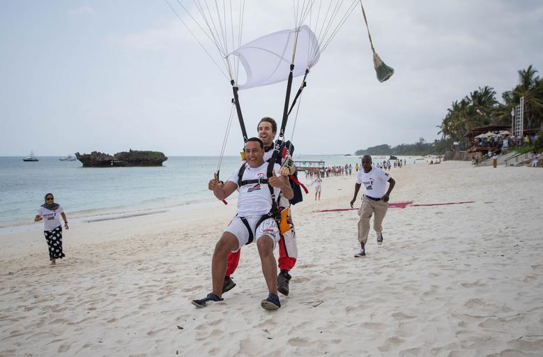 Keywords: outdoor sport snow KENYA, Watamu: In a photograph taken by Make It Kenya 17 January 2016, Kenya's Cabinet Secretary for Tourism Hon. Najib Balala arrives in the coastal town of Watamu by parachute after skydiving out of a plane from approx. 11,000ft. Kenya's famous wildlife and beautiful tropical coastline is being showcased in a series of live web broadcasts using state-of–the-art technology. #KenyaLive has enabled people to witness the excitement of a night safari in the Mara in real time using specialist night-vision equipment and is now in Watamu highlighting the work of the turtle conservation organisation Local Ocean Trust, and other activities including stand-up paddle boarding with dolphins, snorkelling and scuba diving by using the scial media application Periscope. MAKE IT KENYA PHOTO / STUART PRICE. KENYA, Watamu: In a photograph taken by Make It Kenya 17 January 2016, Kenya's Cabinet Secretary for Tourism Hon. Najib Balala arrives in the coastal town of Watamu by parachute after skydiving out of a plane from approx. 11,000ft. Kenya's famous wildlife and beautiful tropical coastline is being showcased in a series of live web broadcasts using state-of–the-art technology. #KenyaLive has enabled people to witness the excitement of a night safari in the Mara in real time using specialist night-vision equipment and is now in Watamu highlighting the work of the turtle conservation organisation Local Ocean Trust, and other activities including stand-up paddle boarding with dolphins, snorkelling and scuba diving by using the scial media application Periscope. MAKE IT KENYA PHOTO / STUART PRICE.