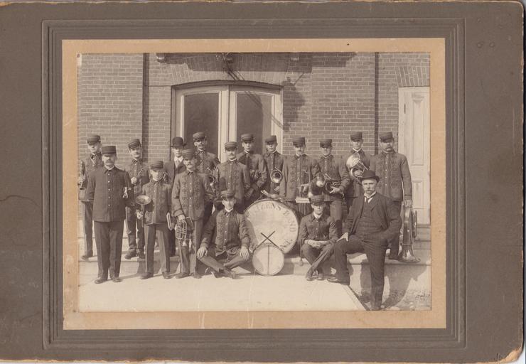 Keywords: 1910s men uniforms musicians musical instruments musicalinstruments Group portrait of a "Citizens' Band". On the reverse of the picture are the words "Owner, Mrs Clara French, Thomas St Deseronto Ont.". [Possibly the Napanee Citizens' Band.] Donated by Wilfred French, January 2016. Group portrait of a "Citizens' Band". On the reverse of the picture are the words "Owner, Mrs Clara French, Thomas St Deseronto Ont.". [Possibly the Napanee Citizens' Band.] Donated by Wilfred French, January 2016. |