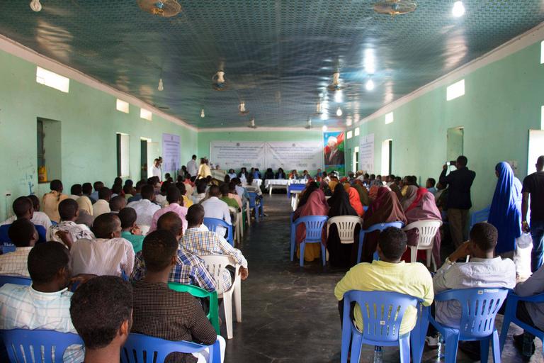 | Keywords: people auditorium indoor crowd Former disengaged Al Shabaab combatants attend their graduation ceremony at Transition Center in Baidoa, Somalia on May 03, 2016. UN Photo / Abdikarim Mohamed Former disengaged Al Shabaab combatants attend their graduation ceremony at Transition Center in Baidoa, Somalia on May 03, 2016. UN Photo / Abdikarim Mohamed |