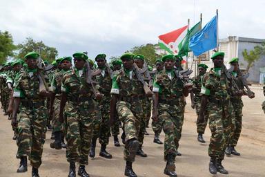 | Keywords: people outdoor Burundi soldiers serving under the African Union Mission in Somalia (AMISOM) march in a parade during a medal awards ceremony at the former Somali Military Academy in Mogadishu. A total of 1819 soldiers got medals at the end of their deployment to Somalia on July 6, 2016. AMISOM Photo/ Omar Abdisalan Burundi soldiers serving under the African Union Mission in Somalia (AMISOM) march in a parade during a medal awards ceremony at the former Somali Military Academy in Mogadishu. A total of 1819 soldiers got medals at the end of their deployment to Somalia on July 6, 2016. AMISOM Photo/ Omar Abdisalan |