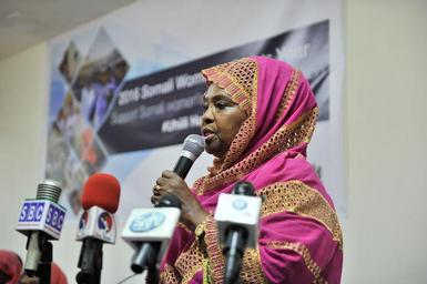 | Keywords: The Deputy Chairperson of the Committee of Goodwill Ambassadors, Batula Sheikh Ahmed Gaballe, speaks at a meeting of women leaders on women's political representation in Mogadishu, Somalia on September 7, 2016. AMISOM Photo / Omar Abdisalan The Deputy Chairperson of the Committee of Goodwill Ambassadors, Batula Sheikh Ahmed Gaballe, speaks at a meeting of women leaders on women's political representation in Mogadishu, Somalia on September 7, 2016. AMISOM Photo / Omar Abdisalan | ||||