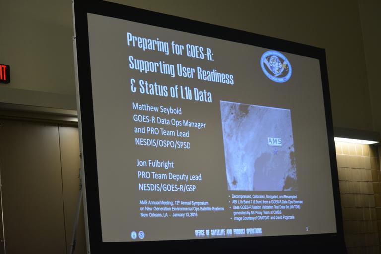 | Keywords: ams2016 user readiness userreadiness goes-r goesr data noaa nesdis text sign Matt Seybold, GOES-R Data Operations Manager, presented "Preparing for GOES-R: Supporting User Readiness of Level 1b data" at #AMS2016. The AMS Annual Meeting is the world’s largest yearly gathering for the weather, water, and climate community. It brings together great minds from a diverse set of scientific disciplines – helping attendees make career-long professional contact and life-long friends while learning from the very top people in the atmospheric sciences. Original photo source: www.goes-r.gov/multimedia/events.html Matt Seybold, GOES-R Data Operations Manager, presented "Preparing for GOES-R: Supporting User Readiness of Level 1b data" at #AMS2016. The AMS Annual Meeting is the world’s largest yearly gathering for the weather, water, and climate community. It brings together great minds from a diverse set of scientific disciplines – helping attendees make career-long professional contact and life-long friends while learning from the very top people in the atmospheric sciences. Original photo source: www.goes-r.gov/multimedia/events.html |