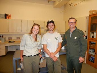 Keywords: national park service nationalparkservice interns youth programs youthprograms gip geoscientists-in-the-parks geoscientistsintheparks indoor GIPs Megan Norr and Jacob Thacker with supervisor Erik Oberg after completing the archival project in the geology lab, Yellowstone Heritage and Research Center. NPS photo GIPs Megan Norr and Jacob Thacker with supervisor Erik Oberg after completing the archival project in the geology lab, Yellowstone Heritage and Research Center. NPS photo |