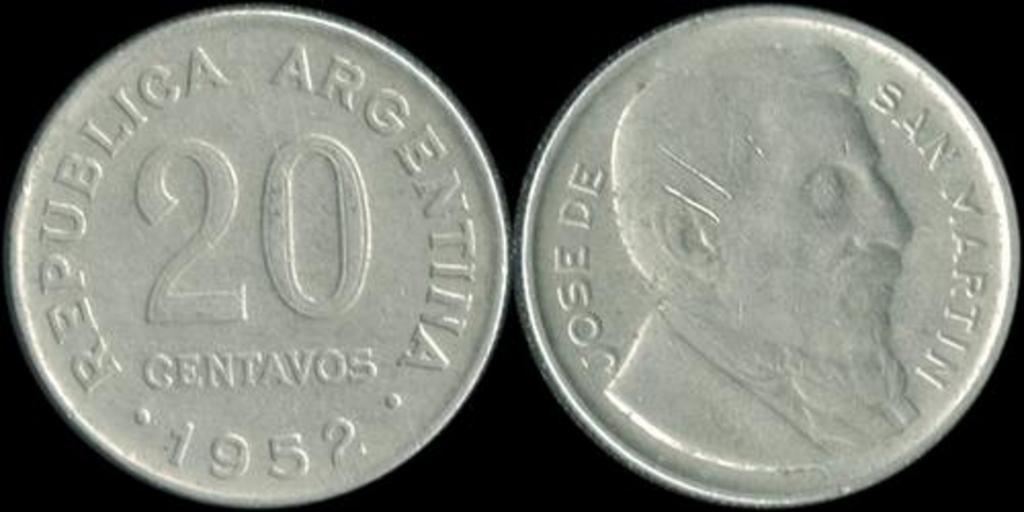 Keywords: 20Centavoos52.PNG es Moneda de 20 centavos de 1952 Argentine 20 centavos 1/100 of a peso Argentine coin Argentine Central Bank photograph by Turkmenistan 1952 Coin PD-AR-Anonymous <br/>Photograph Coins of Argentina
