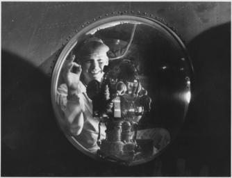 Keywords: 20TH AIR FORCE, OKINAWA-A-2C Don W. Murray of Mazon, Ill., flashes a victory smile from the gun blister of his U.S.... - NARA - 542361.tif Scope and content 20TH AIR FORCE OKINAWA--A/2C Don W Murray of Mazon Ill flashes a victory smile from the gun blister of his U S Air Force B-29 Superfort after shooting down a Communist jet fighter Airman Murray shot down the enemy jet during a pre-dawn strike against a Red staff school on the west coast of North Korea October 8 Sighting the enemy fighter approaching from the rear Murray fired as it attempted to sneak into the bomber stream After five bursts the jet broke away and exploded Murray is a left gunner with the 307th Bomb Wing based on Okinawa General notes 542361 Local identifier 342-FH-4A 31910 Department of Defense Department of the Air Force 09/26/1947 - Still Picture Records Section Special Media Archives Services Division NWCS-S National Archives at College Park 8601 Adelphi Road College Park MD 20740-6001 ca 11/1952 Record group Record Group 342 Records of U S Air Force Commands Activities and Organizations 1900 - 2003 Record group ARC 654 Black and White and Color Photographs of U S Air Force and Predecessor Agencies Activities Facilities and Personnel - World War II and Korean War compiled ca 1940 - ca 1980 documenting the period 1863 - 1953 Series ARC 542351 File unit File unit ARC Variant control numbers Agency-Assigned Identifier NASM 4A 31910<br /> NAIL Control Number NWDNS-342-FH-4A 31910 yes Other versions NARA-cooperation PD-USGov Air gunners B-29s in the Korean War