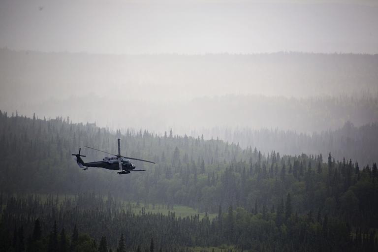 Keywords: 210th Rescue Squadron 130710-D-FZ583-463.jpg en An Alaska Air National Guard HH-60 Pave Hawk from the 210th Rescue Squadron performs a simulated search and rescue pattern near the Little Susitna River in Alaska The primary mission of the HH-60G Pave Hawk helicopter is to conduct day or night personnel recovery operations into hostile environments to recover isolated personnel during war The HH-60G is also tasked to perform military operations other than war including civil search and rescue medical evacuation disaster response humanitarian assistance security cooperation/aviation advisory NASA space flight support and rescue command and control Features The Pave Hawk is a highly modified version of the Army Black Hawk helicopter which features an upgraded communications and navigation suite that includes integrated inertial navigation/global positioning/Doppler navigation systems satellite communications secure voice and have quick communications All HH-60Gs have an automatic flight control system night vision goggles with lighting and forward looking infrared system that greatly enhances night low-level operations Additionally Pave Hawks have color weather radar and an engine/rotor blade anti-ice system that gives the HH-60G an adverse weather capability Pave Hawk mission equipment includes a retractable in-flight refueling probe internal auxiliary fuel tanks two crew-served 7 62 mm or 50-caliber machine guns and an 8 000-pound 3 600 kilograms capacity cargo hook Photo by Lt Bernie Kale 2013-07-10 George Kale https //www dvidshub net/image/1525604 130710-D-FZ583-463 2014-08-27 17 56 JOINT BASE ELMENDORF-RICHARDSON AK US PD-USGov Joint Base Elmendorf-Richardson Night vision equipment Images from DoD uploaded by Fæ