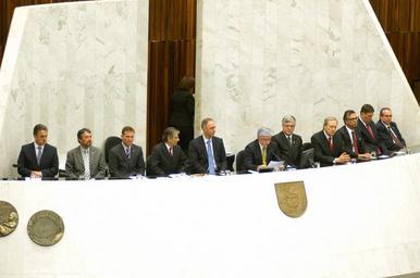 | Keywords: sessão solene sessãosolene ayres britto ayresbritto Em solenidade realizada nesta segunda-feira (21), às 18h30, a Assembleia Legislativa entregou o título de Cidadão Honorário do Paraná ao ministro Carlos Augusto Ayres de Freitas Britto, vice-presidente do Supremo Tribunal Federal (STF). O evento aconteceu no Plenário, por iniciativa do deputado Fábio Camargo (PTB). Ao justificar a homenagem, seu autor lembrou que Ayres Britto presidiu o Tribunal Superior Eleitoral (TSE) no período 2008/2010 e atuou para democratizar as eleições municipais ao viabilizar a contratação de servidores concursados para administrar o pleito, em lugar dos indicados dos prefeitos. Leia mais: www.alep.pr.gov.br/imprensa/noticias/noticia/20684/assemb... Foto: Sandro Nascimento/Alep (crédito obrigatório) Em solenidade realizada nesta segunda-feira (21), às 18h30, a Assembleia Legislativa entregou o título de Cidadão Honorário do Paraná ao ministro Carlos Augusto Ayres de Freitas Britto, vice-presidente do Supremo Tribunal Federal (STF). O evento aconteceu no Plenário, por iniciativa do deputado Fábio Camargo (PTB). Ao justificar a homenagem, seu autor lembrou que Ayres Britto presidiu o Tribunal Superior Eleitoral (TSE) no período 2008/2010 e atuou para democratizar as eleições municipais ao viabilizar a contratação de servidores concursados para administrar o pleito, em lugar dos indicados dos prefeitos. Leia mais: www.alep.pr.gov.br/imprensa/noticias/noticia/20684/assemb... Foto: Sandro Nascimento/Alep (crédito obrigatório) |
