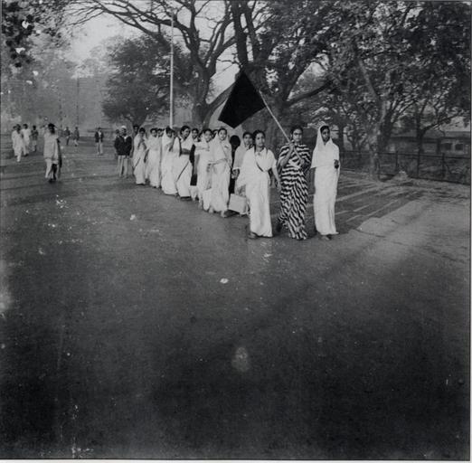 | Keywords: 21 Feb 1953 Dhaka University female students procession 1.png  বাংলা ১৯৫৩ সালের ২১শে ফেব্রুয়ারি প্রভাত ফেরিতে কাল পতাকা হাতে ছাত্র রা।<br>English 21st February morning 1953 Female students procession black flag in hand Author's Album 1953-02-21 Prof Rafiqul Islam PD-Pakistan GFDL cc-by-3 0 Photos by Rafiqul Islam |