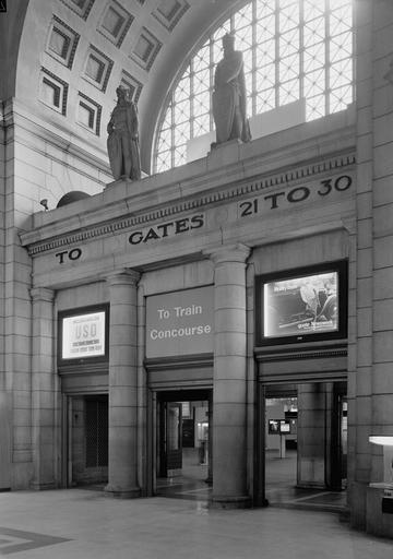 | Keywords: 24. INTERIOR, DETAIL, ENTRANCE TO TRAIN CONCOURSE FROM WAITING ROOM - Union Station030033pv.jpg en Union Station 50 Massachusetts Avenue Northeast Washington District of Columbia DC 5 x 7 in accession number Reproduction Number HABS DC WASH 536--24 Call Number HABS DC WASH 536--24 institution Library of Congress Prints and Photographs Division Washington D C 20540 USA http //hdl loc gov/loc pnp/pp print LOC-image hhh dc0254/photos 030033p creator Jack Boucher Rights Advisory No known restrictions on images made by the U S Government; images copied from other sources may be restricted http //www loc gov/rr/print/res/114_habs html 38 895 -77 03667 DC WASH 536--24 Union Station Washington D C Uploaded with UploadWizard |