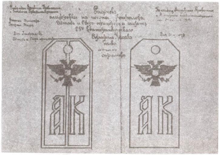 | Keywords: 25EktbPolkKolchaka.jpg ru Погоны 25-го Екате инбу гского полка имени адми ала Колчака 2014-03-15 15 28 22 Богданов К А Адми ал Колчак Биог афическая повесть-х оника СПб Судост оение 1993 304 с ил ISBN 5-7355-0481-9 unk PD-Old Uploaded with UploadWizard Military uniforms of the White movement Aleksandr Kolchak |