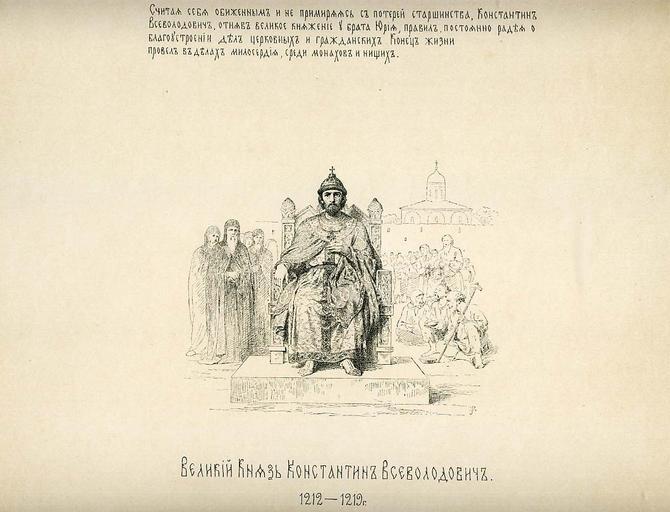Keywords: 26 History of the Russian state in the image of its sovereign rulers.jpg ru Великий Князь Константин Всеволодович 1212-1219 г <br>Считая себя обиженным и не п име ясь с поте ей ста шинства Константин Всеволодович отняв великое княжение у б ата Ю ия п авил постоянно адея о благоуст оении дел це ковных и г ажданских Конец жизни п овел в делах милосе дия с еди монахов и нищих full 26 History of the Russian state in the image of its sovereign rulers - fragment jpg Konstantin Vsevolodovich