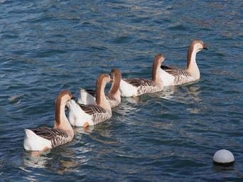 MAKE A MEME View Large Image Χήνες 2780.JPG en Geese Anser cygnoides in the old harbour of Rethymno Their beak is not as pronounced as the original species and could be a hybrid with Anser anser or Anser fabalis as the hydridation between these species is common ...